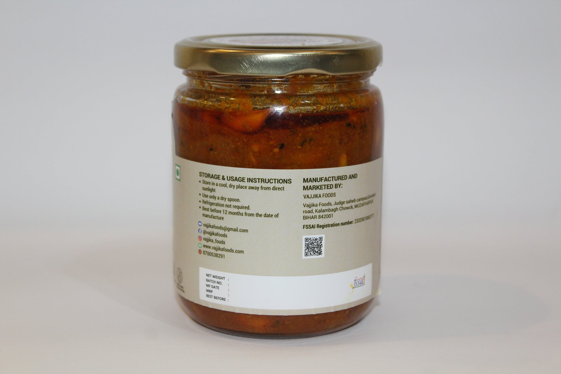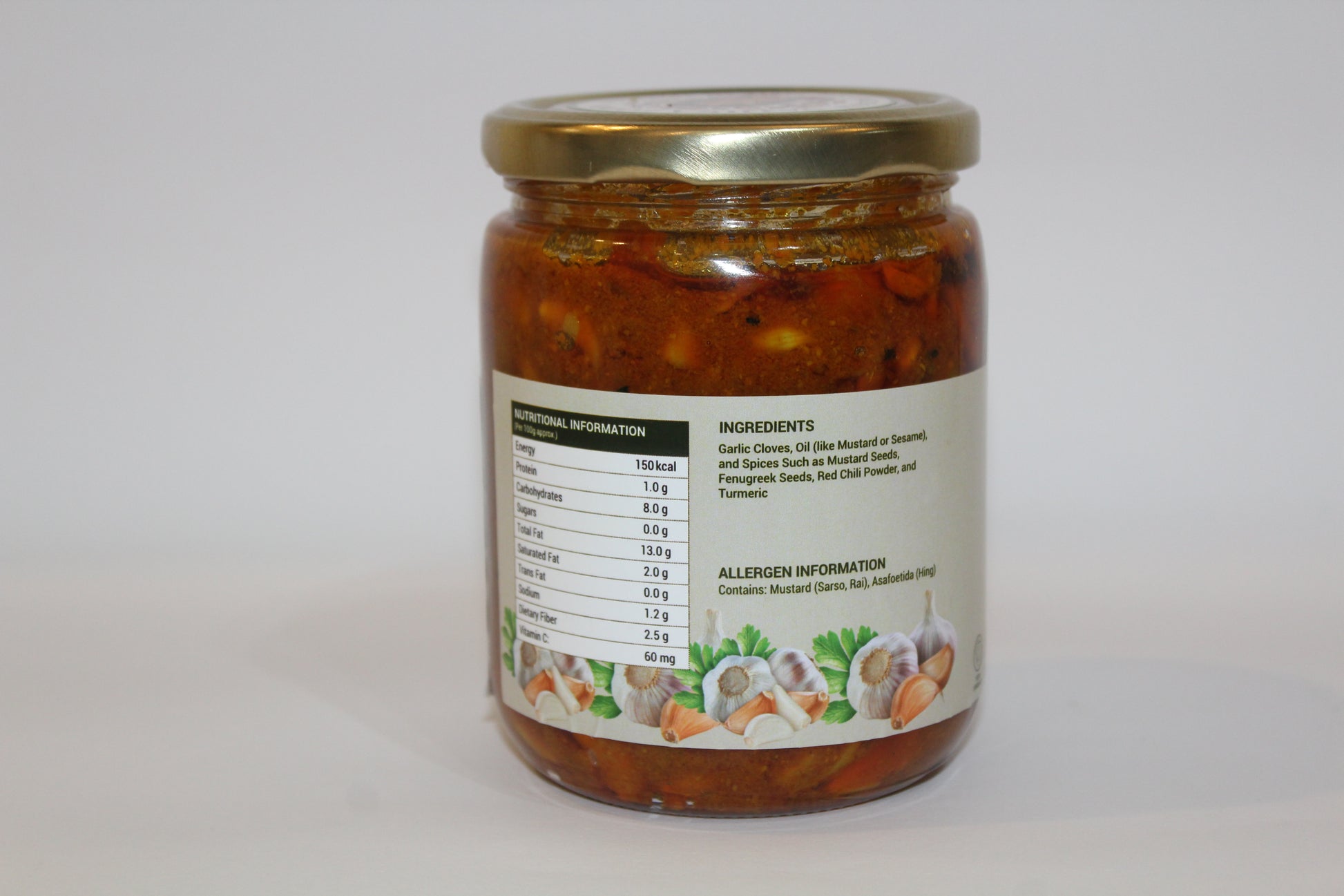 Garlic Cloves, Mustard Oil, Ginger, Spices (Fenugreek, Nigella, Ajwain & Fennel Seeds)